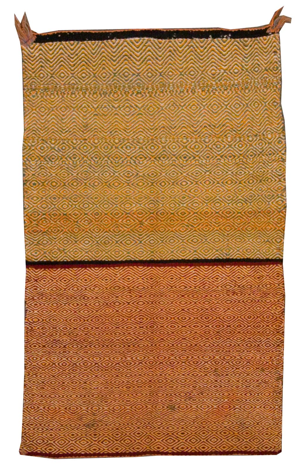 DESCRIPTION: A Navajo twill rug is a rare and technically complex weaving distinguished by its diagonal ribbed texture, achieved through a twill weave rather than the typical tapestry weave. These rugs often feature bold geometric forms or stepped patterns, with the twill technique adding depth and movement to the design. Woven primarily in natural wool tones, such as ivory, brown, and gray, they are prized for their craftsmanship and unique place within the broader Navajo weaving tradition.