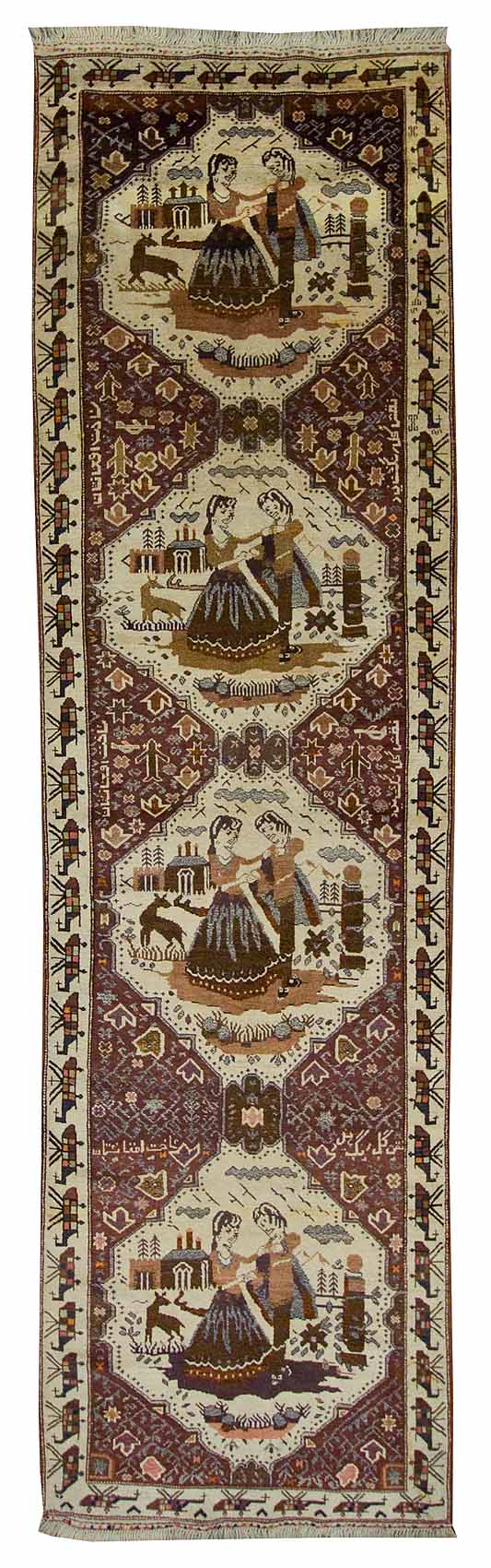 Handknotted Guligul Pictorial Rug made in Afghanistan 3'5" x 12'2" #4595