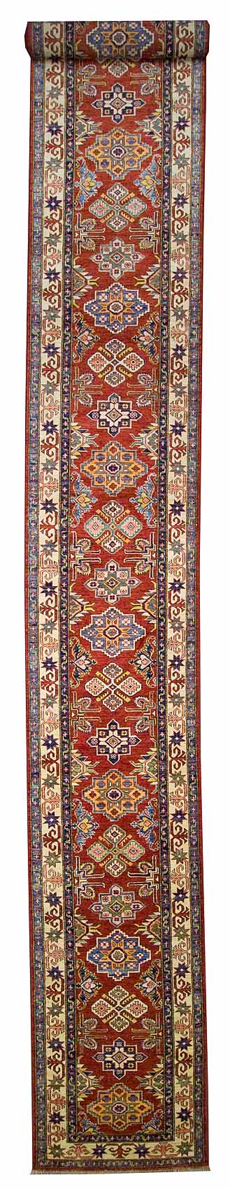 Handknotted Ghazneh Kazak Rug made in Afghanistan 2'6" x 21'8" #20622