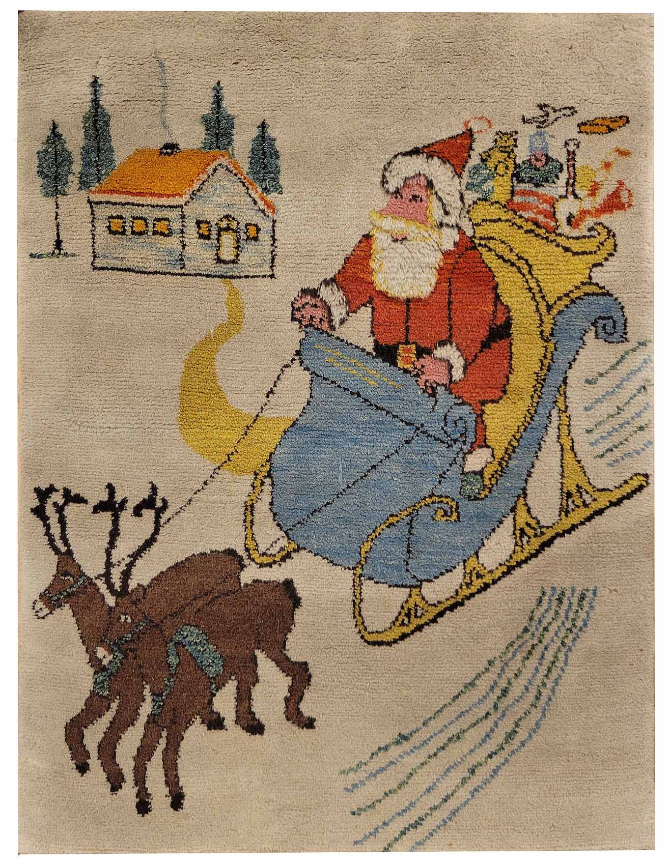 Handknotted Pictorial Santa Rug made in Turkey 2'5" x 3'3" #26715