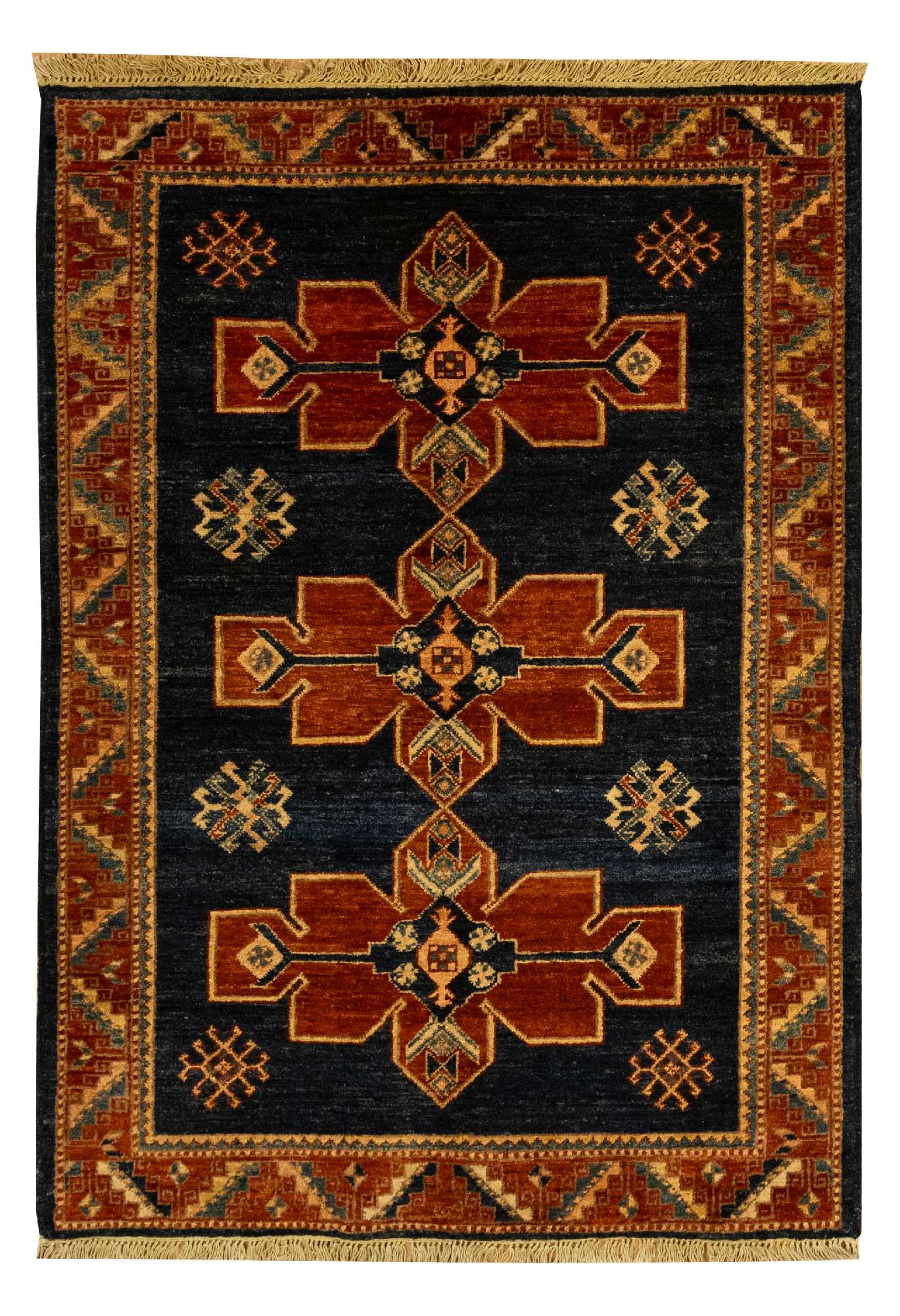 Handknotted Amu Darya Kazak Rug made in Afghanistan 3'4" x 4'8" #8424