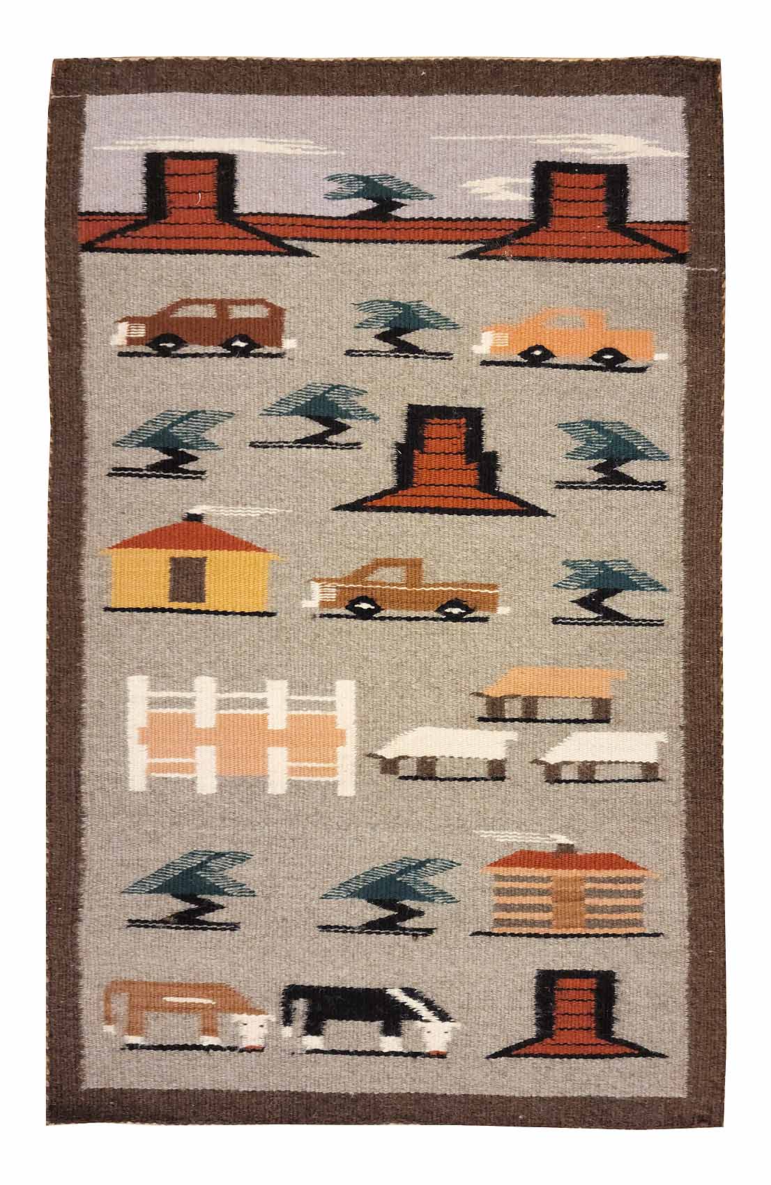 Handwoven Navajo Pictorial Rug made in North America 21" x 34" #26263