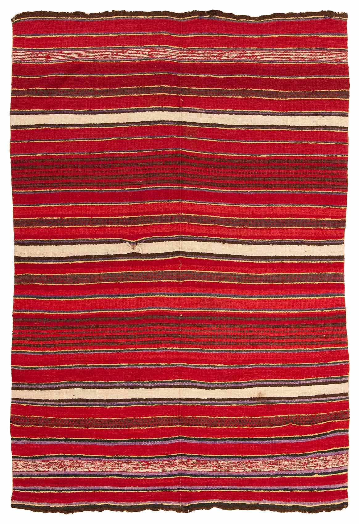 DESCRIPTION: Rio Grande rugs, woven primarily by Hispanic weavers in New Mexico from the 18th through early 20th centuries, are known for their bold stripes and banded designs influenced by both Spanish Colonial and Indigenous weaving traditions. These textiles often feature natural wool tones, black, brown, gray, and white. They sometimes accented with indigo or cochineal red, and were originally made as blankets or utilitarian textiles.