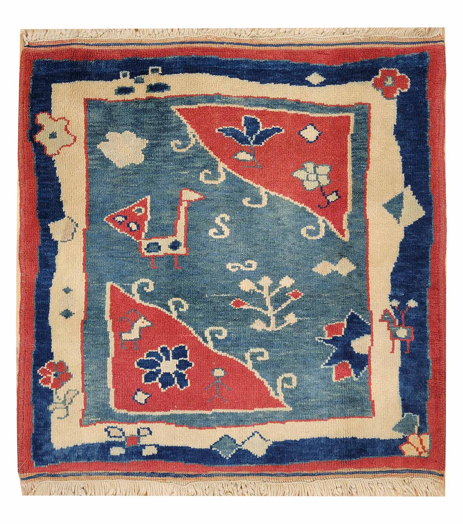 Handknotted Tribal Peacock Rug made in Turkey 2'6" x 2'7" #25591