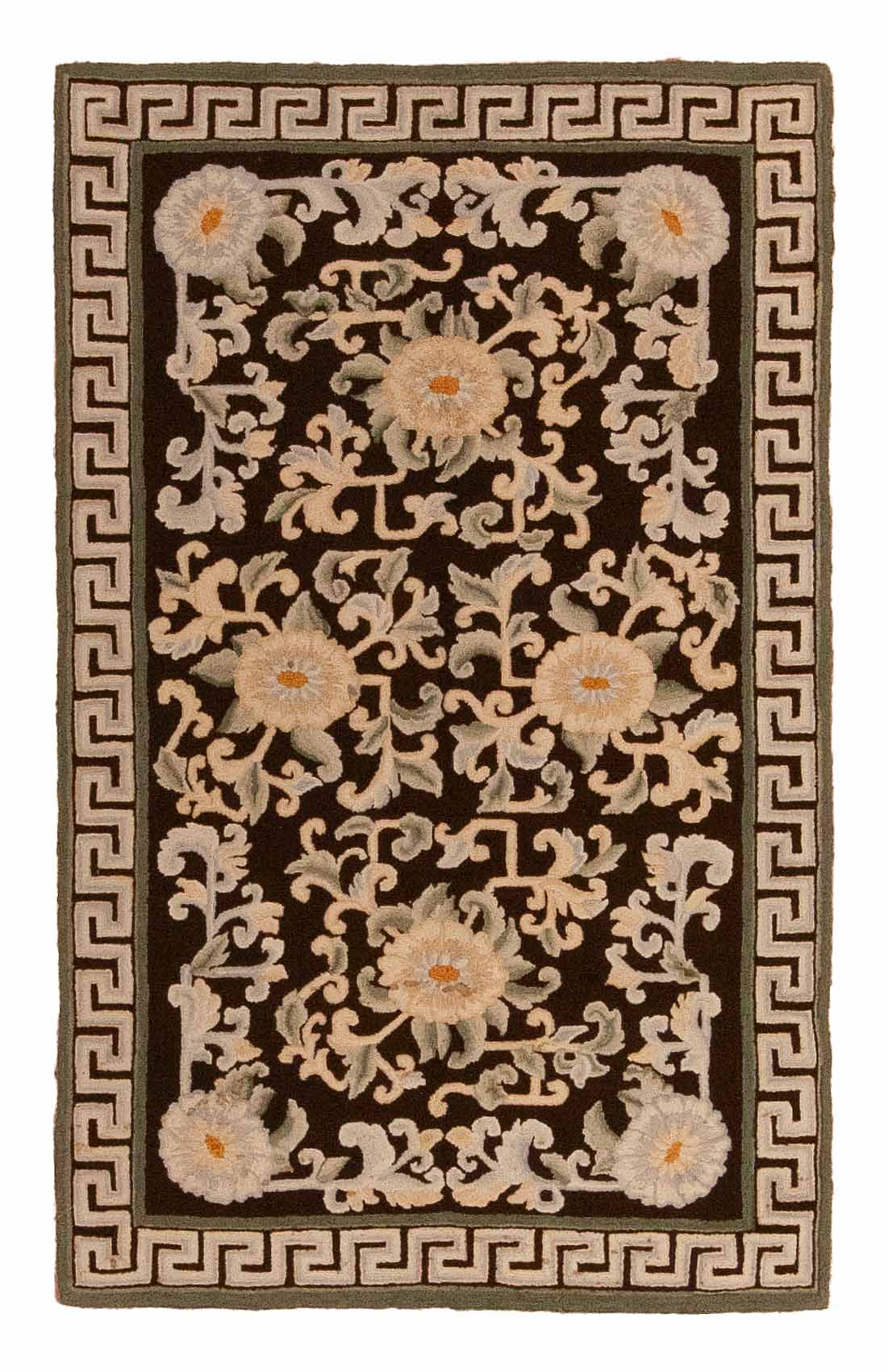Handknotted Hooked Rug Floral Rug made in Europe 2'10" x 4'7" #14448