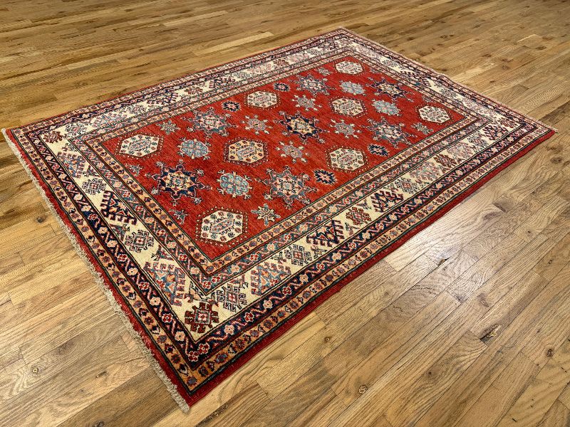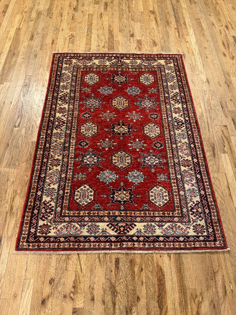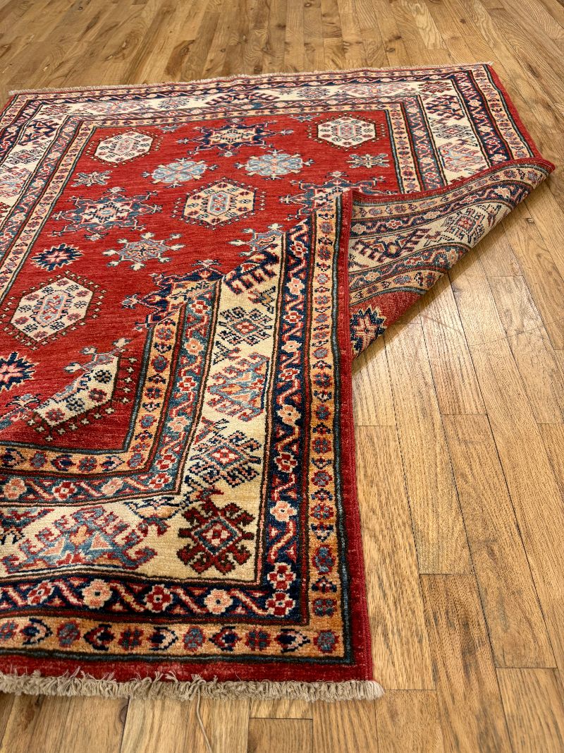 Handknotted Kazak Rug made in Afghanistan 4'2" x 5'11" #14991