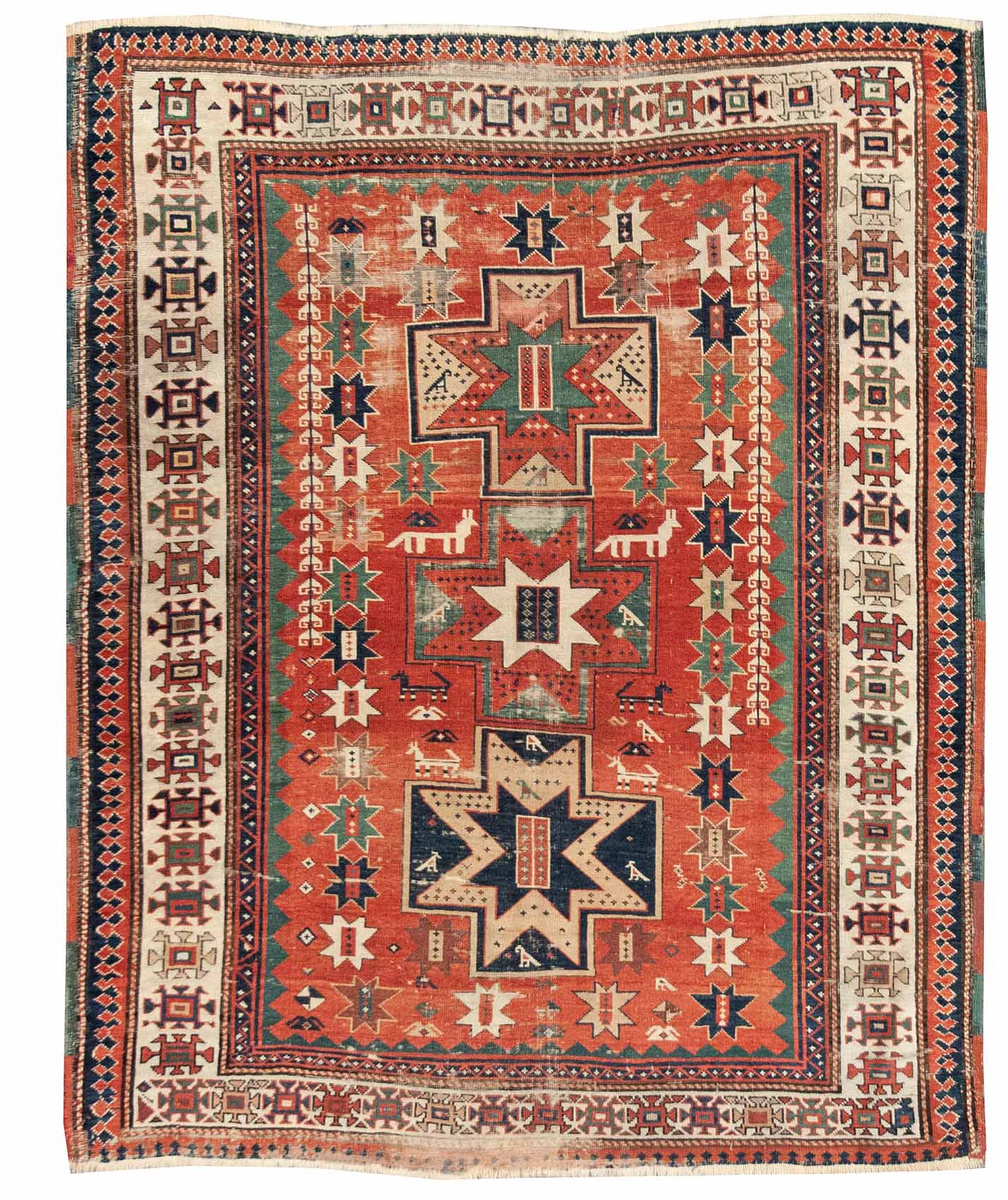 Handknotted Kazak Triple Medallion Rug made in Caucasus 5'3" x 6'2" #13056