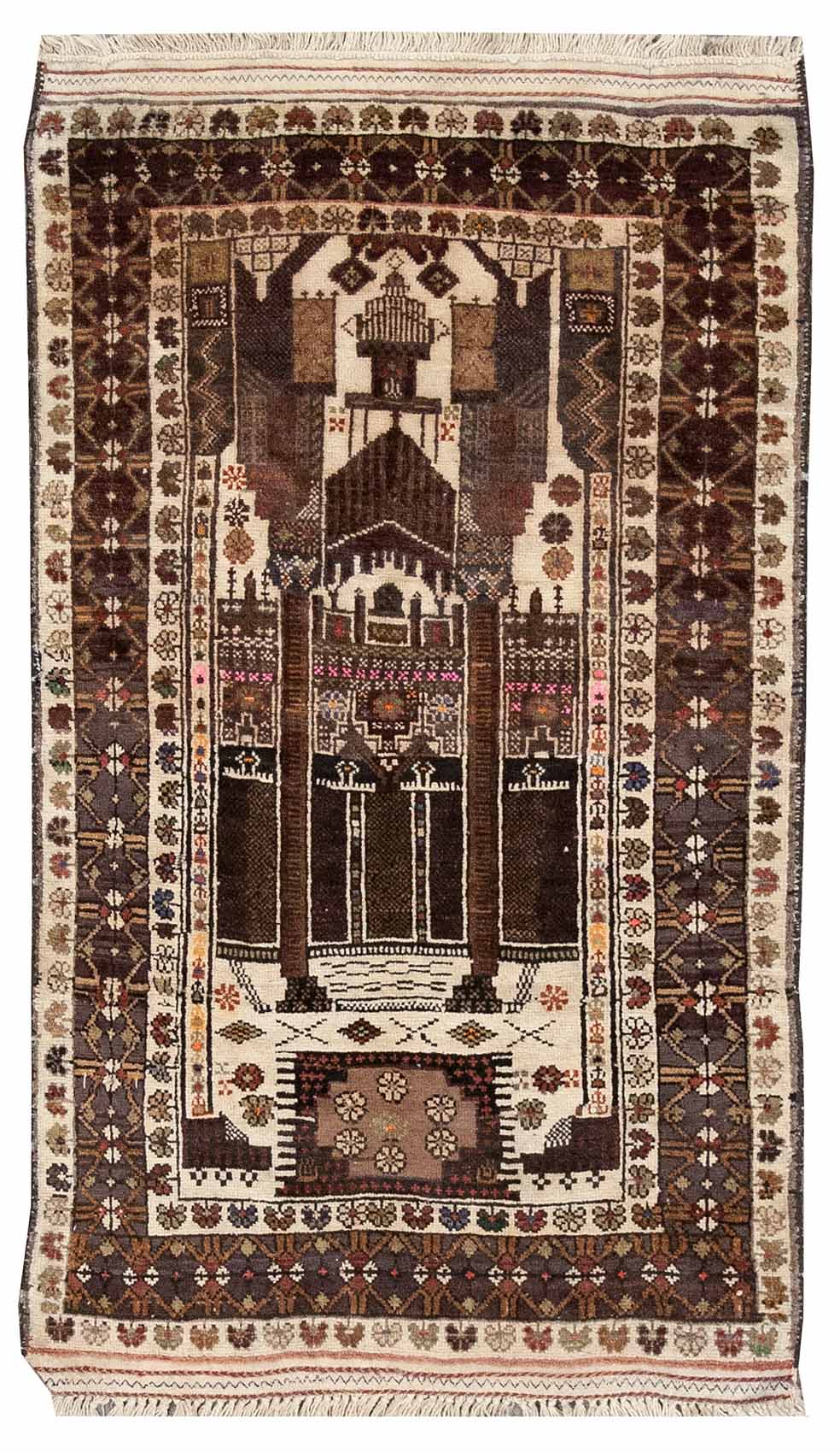 Handknotted Baluch Prayer Rug made in Afghanistan 2'9" x 4'6" #4017