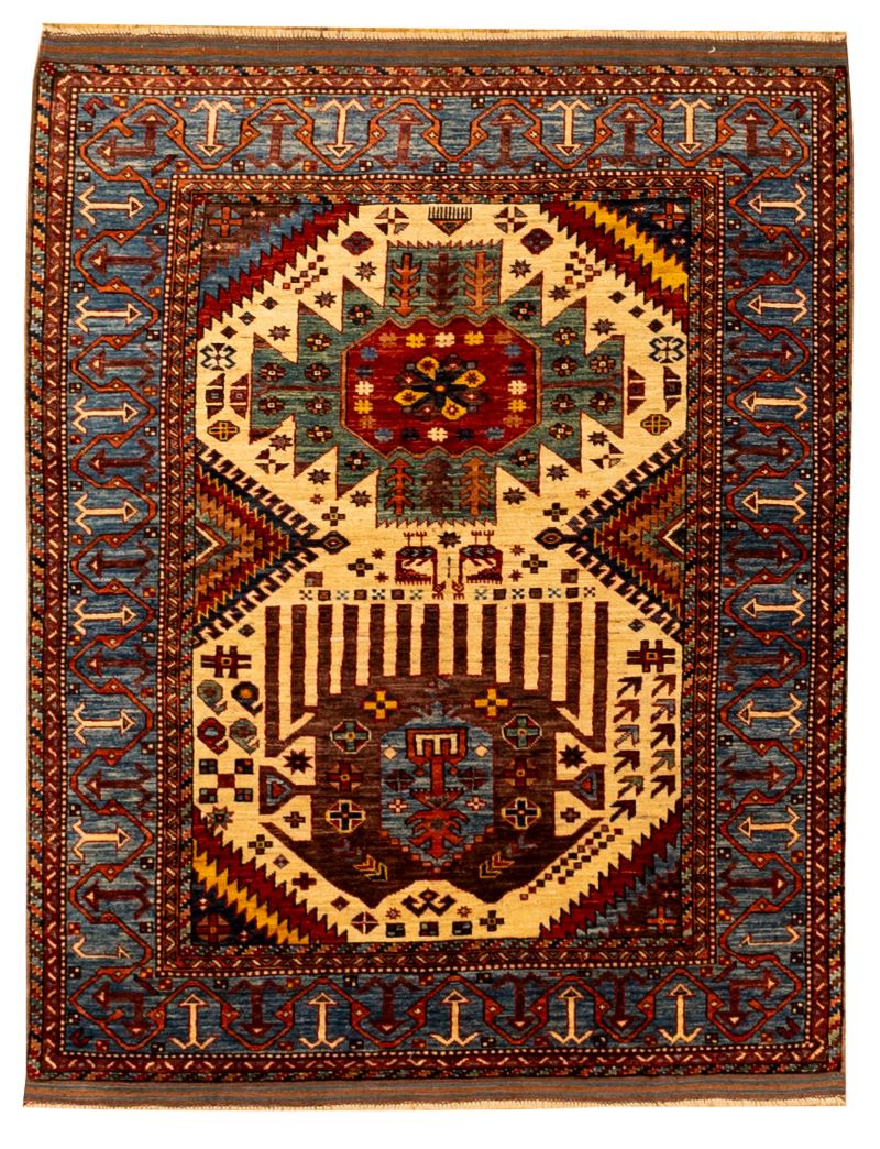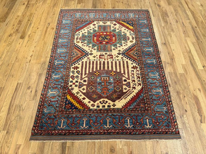 Handknotted Baluch Caucasian Rug made in Afghanistan 4'1" x 5'6" #28104