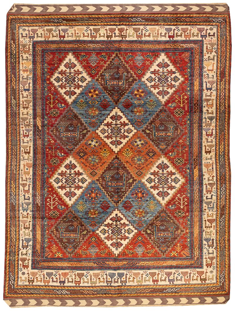 Handknotted Caucasian Qashqai Rug made in Afghanistan 7'7" x 9'7" #28834